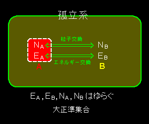 E全=EA+EB ⇒ 0=δE全=δEA+δEB N全=NA+NB ⇒ 0=δN全=δNA+δNB かつ,EA << EB および,NA << NB |