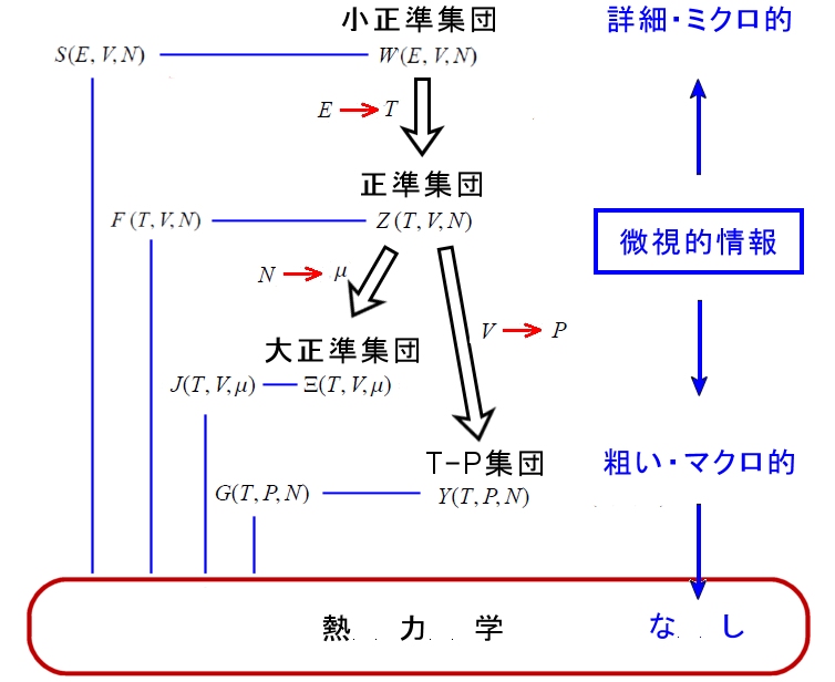 ミクロカノニカル−,カノニカル−,グランドカノニカルアンサンブルの比較