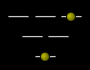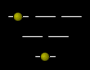 | E = 4ε のときの微視的状態数の数え方 古典統計では6+4=10通り,ボース統計では3+3=6通り,フェルミ統計では3+1=4通りの微視的状態が存在する。 なお,粒子Nに対してN!で古典統計の結果を除した修正古典統計は10÷2=5通りとなるが,具体的な微視的状態は図示不可能 (修正古典統計は所詮 ニセモノ なのだ)。 |