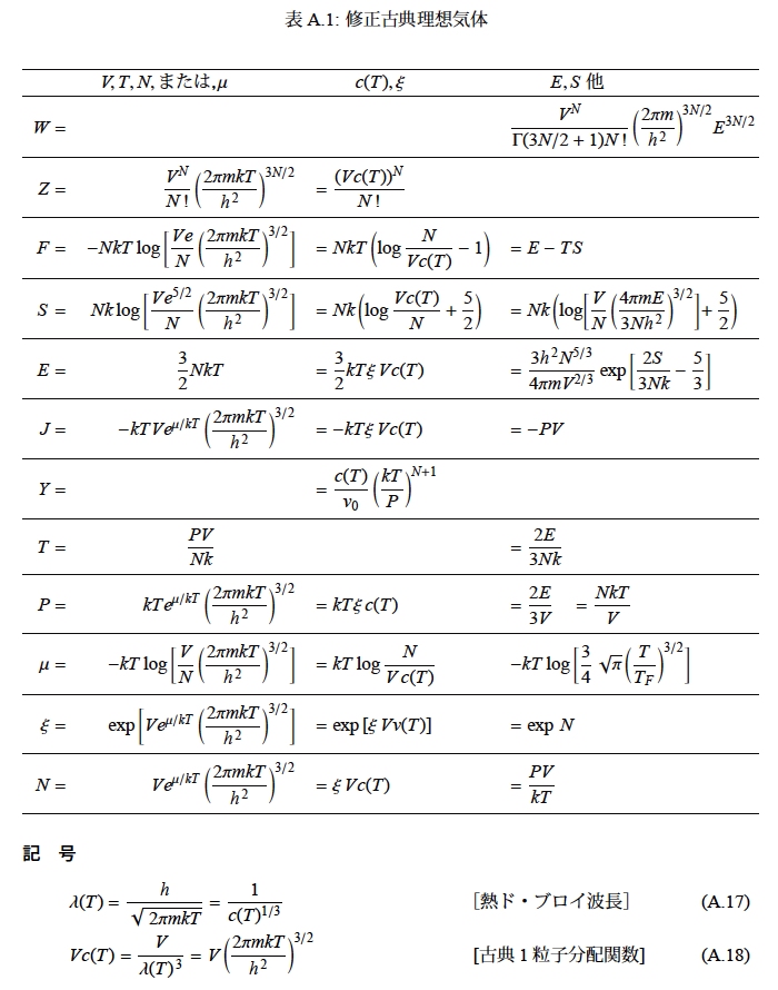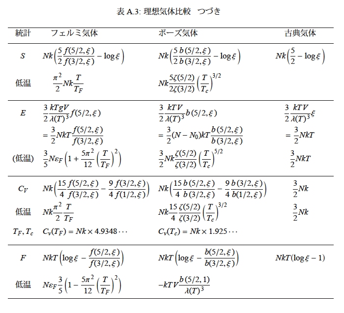 | 古典理想気体 | 古典理想気体 (スピン) 2→1(なし) | |||||||||||||||||||||||||||||||||||||||||||||||||||||||||||