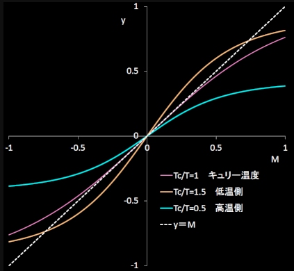 [4] この境界温度がTcであることは,[*]’をMで微分して確かめることができます。(まあ,そのようにTcを定義したわけなんですが,)